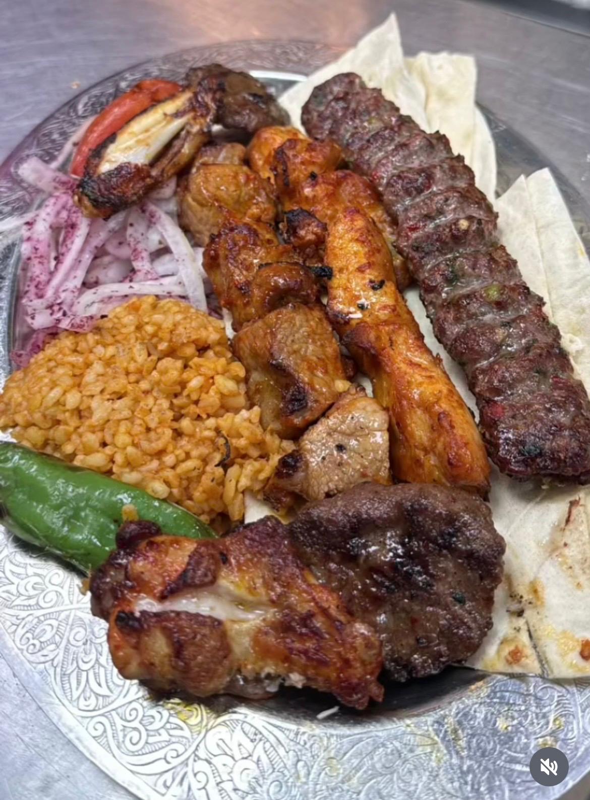 İÇERİK;ET ŞİŞ - TAVUK ŞİŞ - İNCİ KANAT- IZGARA KÖFTE ADANA ( 1,5 PORSİYON )