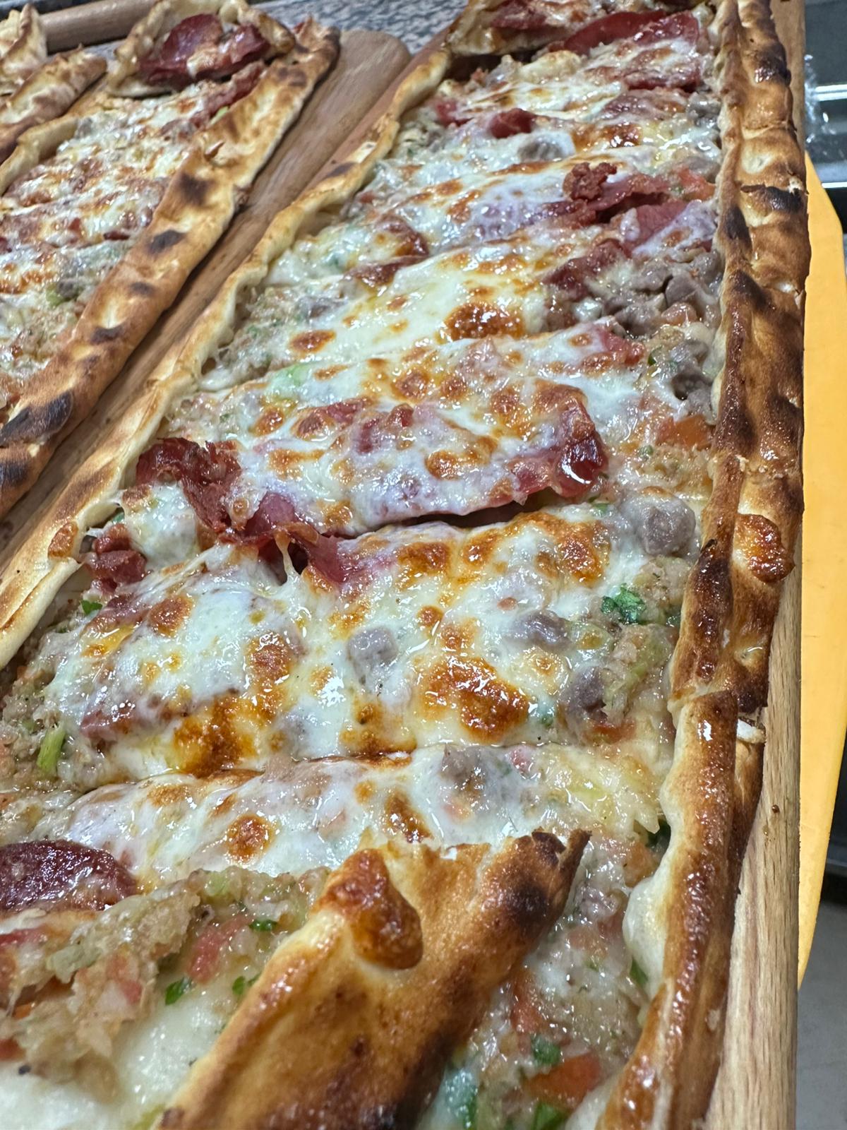 EŞSİZ LEZZETİ VE İNCE HAMURUYLA KIYMALI KAŞARLI PİDEMİZ. (Tercihe Göre Acılı Yaptırabilirsiniz)
